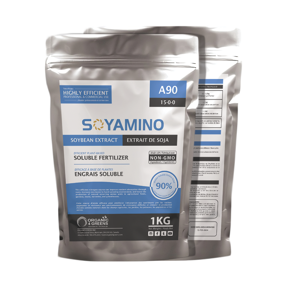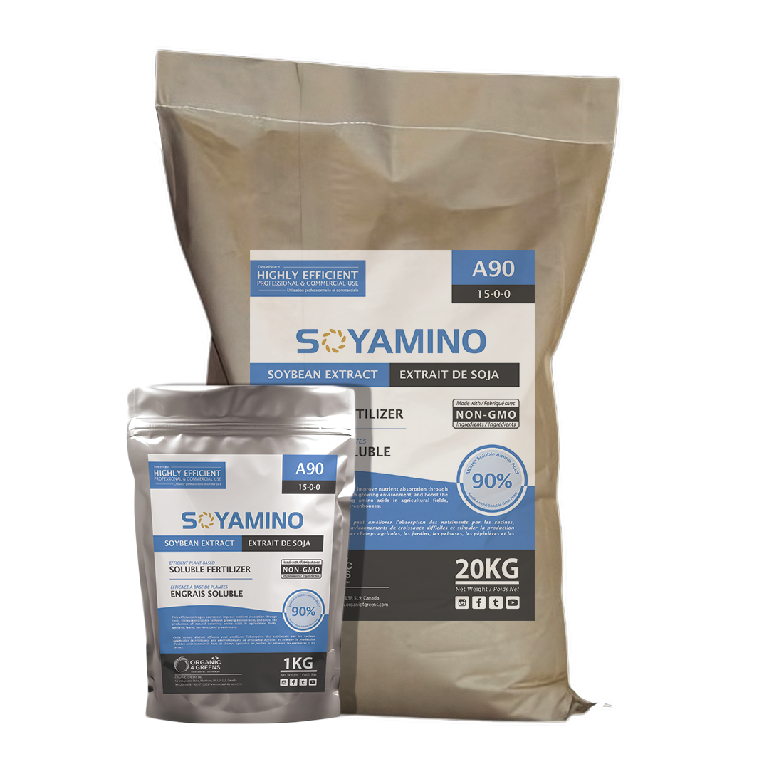 SOYAMINO™ A90 is a water soluble powder fertilizer derived from natural enzyme digestion of Non-GM plant based protein into smaller peptides and amino acids (AA), which are essential building blocks of life.