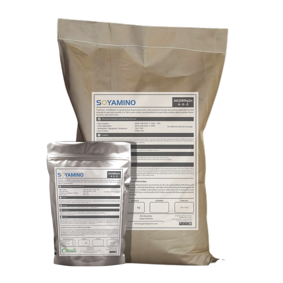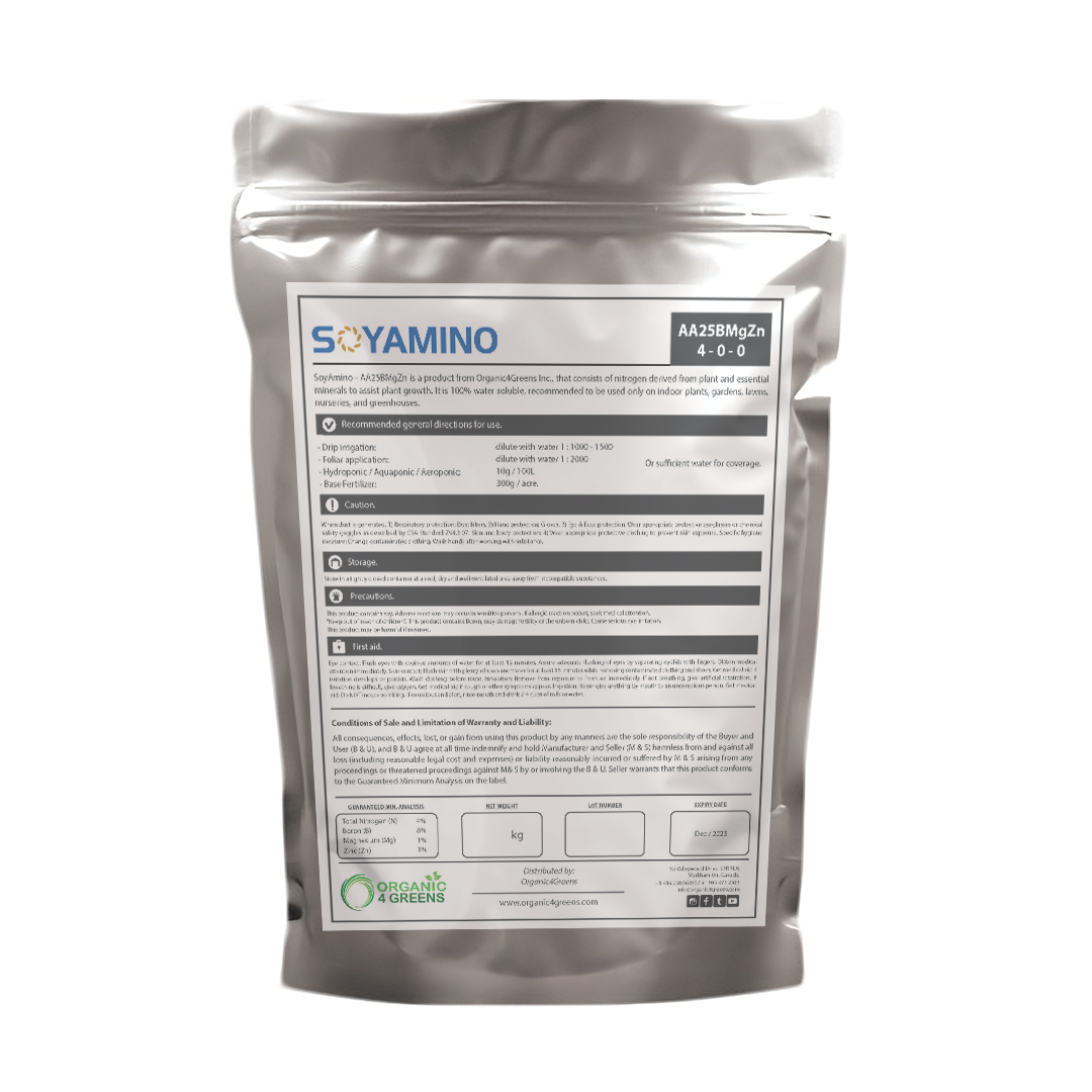 SOYAMINO™ A25BMgZn is an efficient plant based nitrogen fertilizer available for use in your organic plants that consist of amino acids equivalent to N by convention. This product is well known due that it is much more efficient and effective nitrogen source for plant.