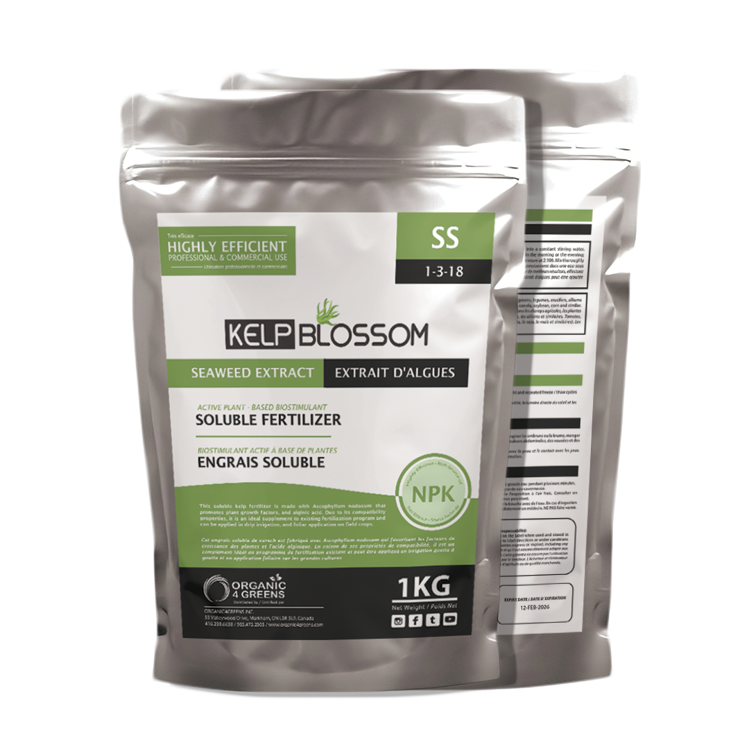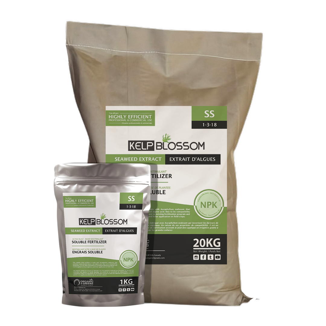 KelpBlossom™ SS 0.5-3-18 is a kelp based extract supplement that consists over 60 minerals, vitamins, growth promoters and soil enriching alginic acids. It is a 100% water soluble perfect for use in any method of liquid application to assist plant growth and resistance to stress.