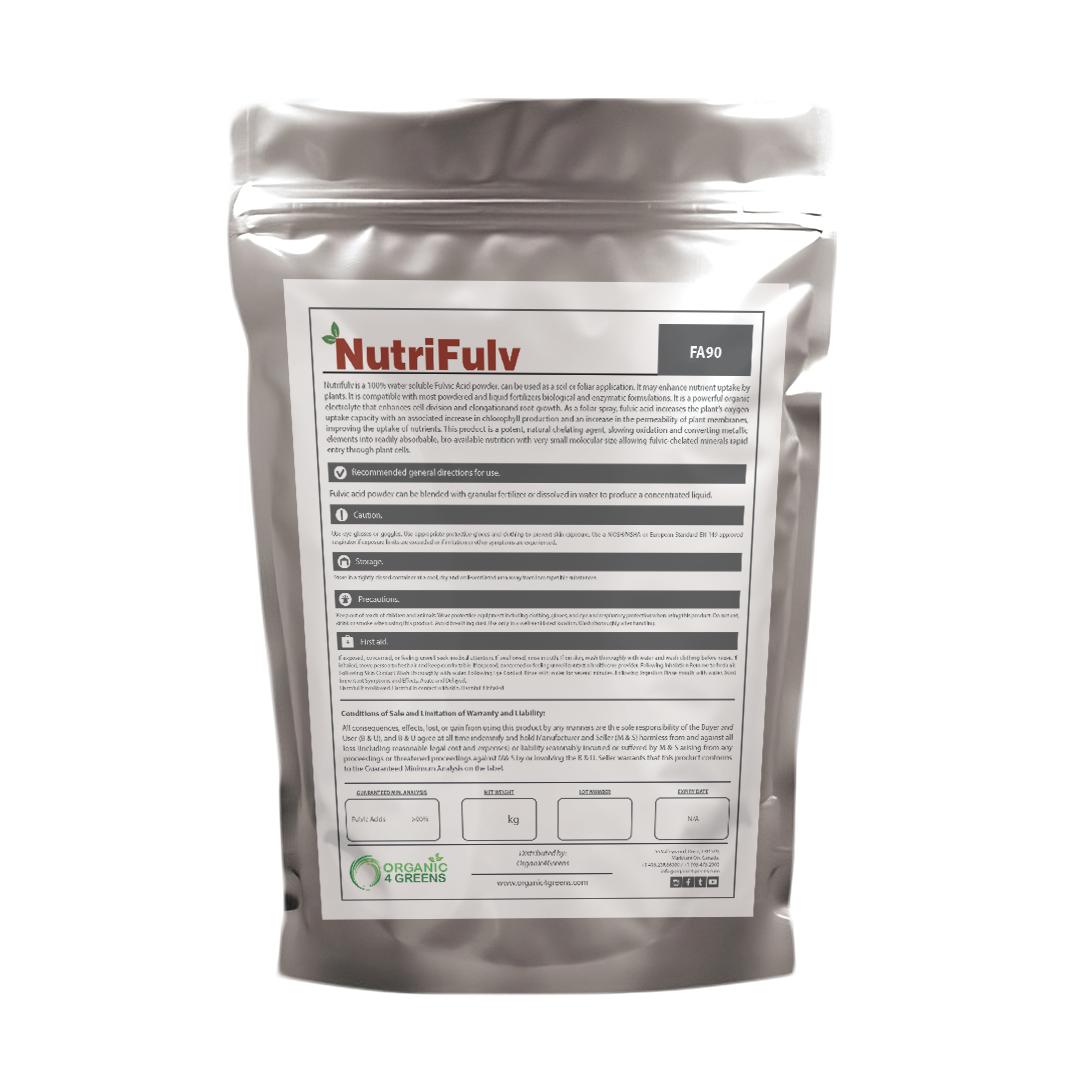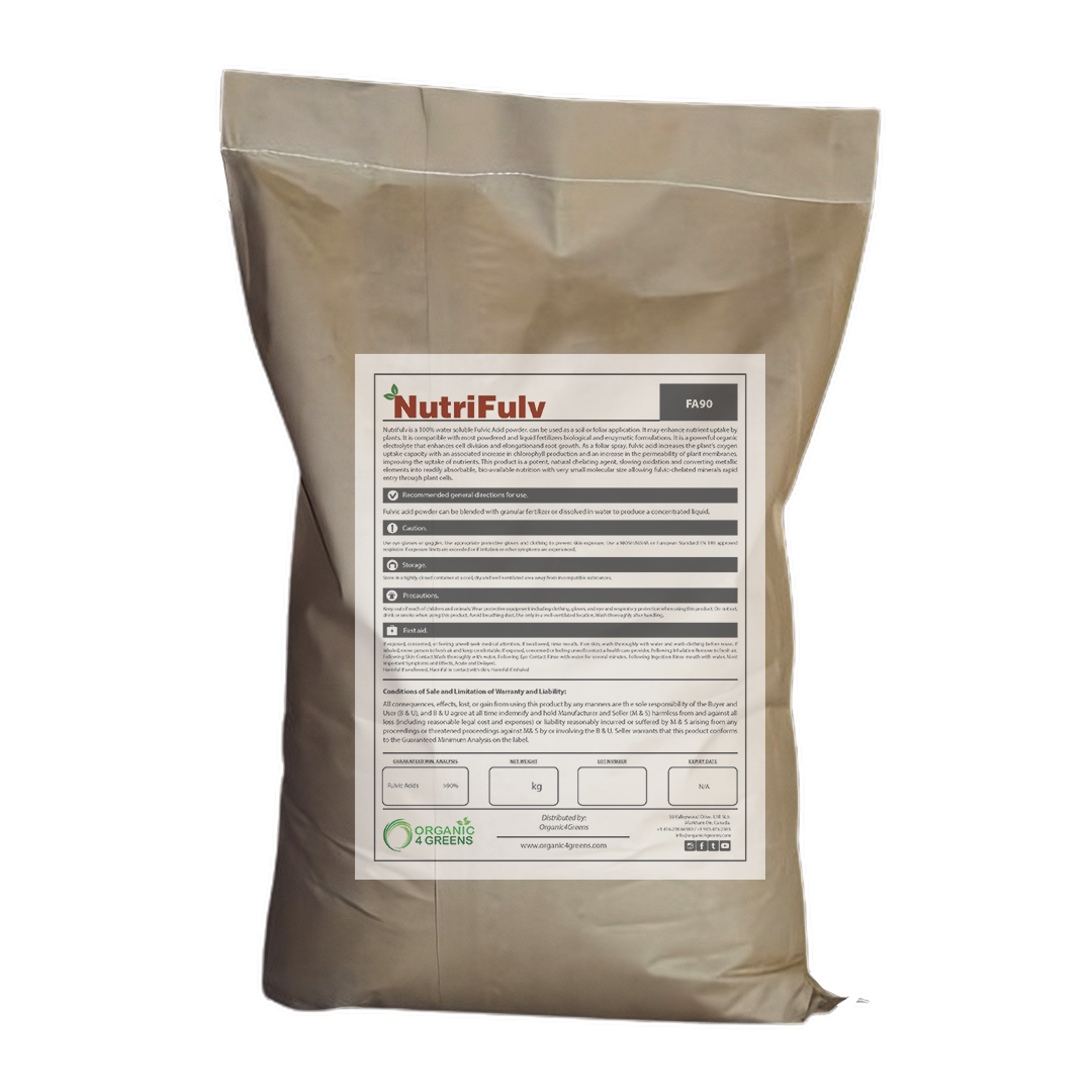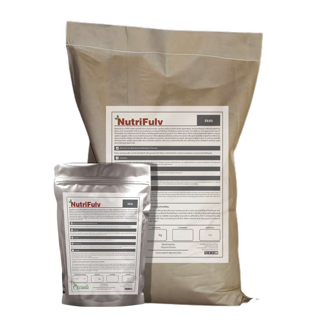 NUTRIFULV™ FA90 is a 100% water soluble Fulvic Acid Powder. This product Improves root pore size, acts as a chelator, increases the permeability of plant cells, allowing plants to take in more nutrients.